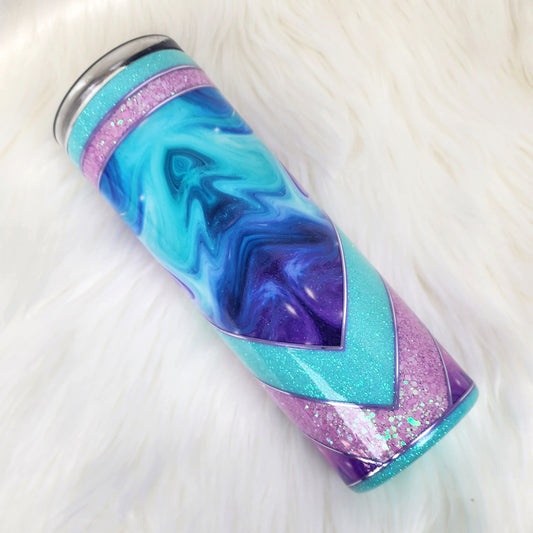 Purple Pink & Turquoise Swirl V Split Tumbler (20oz)